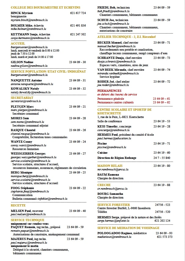 Annuaire des services communaux